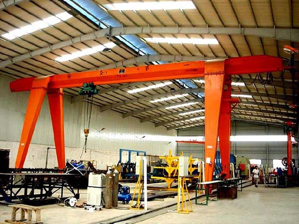 MH型花架式單梁門式起重機(jī)是中小型帶懸臂簡(jiǎn)易龍門起重機(jī),電動(dòng)葫蘆采用CD1和MD1型兩種,主梁是工字鋼和鋼板的組合梁,大車運(yùn)行機(jī)構(gòu)主要由電動(dòng)機(jī)、制動(dòng)器、減速機(jī)、車輪等組成,其結(jié)構(gòu)簡(jiǎn)單、安裝、使用、維修方便。該機(jī)適合用于工廠、鐵路貨場(chǎng)、港口碼頭、水電站等地:該機(jī)工作級(jí)別為A5級(jí),操作方式地面和操作室操作,可有可無(wú)用戶自行選擇。